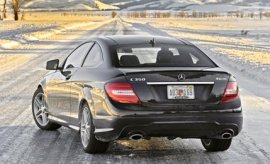 The all-wheel-drive C coupe comes in just one flavor: C350 with an automatic transmission. Its engine is identical to the 3.5-liter found in the rear-wheel-drive C350 sedan and coupe, producing 302 hp at 6500 rpm and 273 lb-ft of torque at 3500 rpm. But the C350 4MATIC coupe is a unique combo; in the C sedan, all-wheel drive is for now offered only on the C300 with its less powerful 228-hp, 3.0-liter V-6. At the test track, the C350 4MATIC had a good showing: 0 to 60 mph in 5.3 seconds, 0.85 g of grip, and 70-to-0-mph braking in 160 feet.