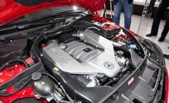 Flared fenders widen the car by 2.2 inches up front and 3.3 out back, covering tracks stretched by 1.6 and 3.1 inches, respectively. Vents behind the front wheels and ahead of the rears are both nonfunctional, which somewhat diminishes their awesomeness. The lightweight wheels at each corner have their movements controlled by adjustable coil-overs, while speed-sensitive steering issues directional orders and Black Series–specific anti-roll bars maintain the contact patches during aggressive driving. The brake rotors measure 15.4 inches in diameter up front and 14.2 inches out back. Red paint is standard on the calipers, which have six pistons up front and four in the rear. The rubber measures 255/35-19 up front and 285/30-19 out back—that’s up from 235/40-18s and 255/35-18s on the basic C63 AMG coupe—and a limited-slip diff is standard, as is a stability-control system that will get entirely out of the way if you want it to.
