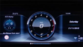 Progressive, on the other hand, puts on large dial in the middle of the screen. The upper outline houses the tachometer, and there's a huge digital speedo right in the center. On either side of the dial are information screens that the driver can switch through, with relevant trip, fuel economy, audio, and navigation data. I like this gauge layout the best – it gives you the information you need front and center (no E-Class driver needs a full tachometer) with a higher number of secondary displays.