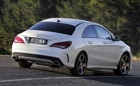 Designers have cleaned up the cluttered and chiseled front fascia, creating a sleeker appearance that mimics the look of the new E-class. Full-LED headlamps are optional, while the taillights adopt a slightly more horizontal shape. There are also new wheel designs. New bumpers and lighting units appear on the Mercedes-AMG CLA45—and closer inspection reveals that the bumpers of the CLA250 with the AMG design package are nearly identical to those of the Mercedes-AMG CLA45.